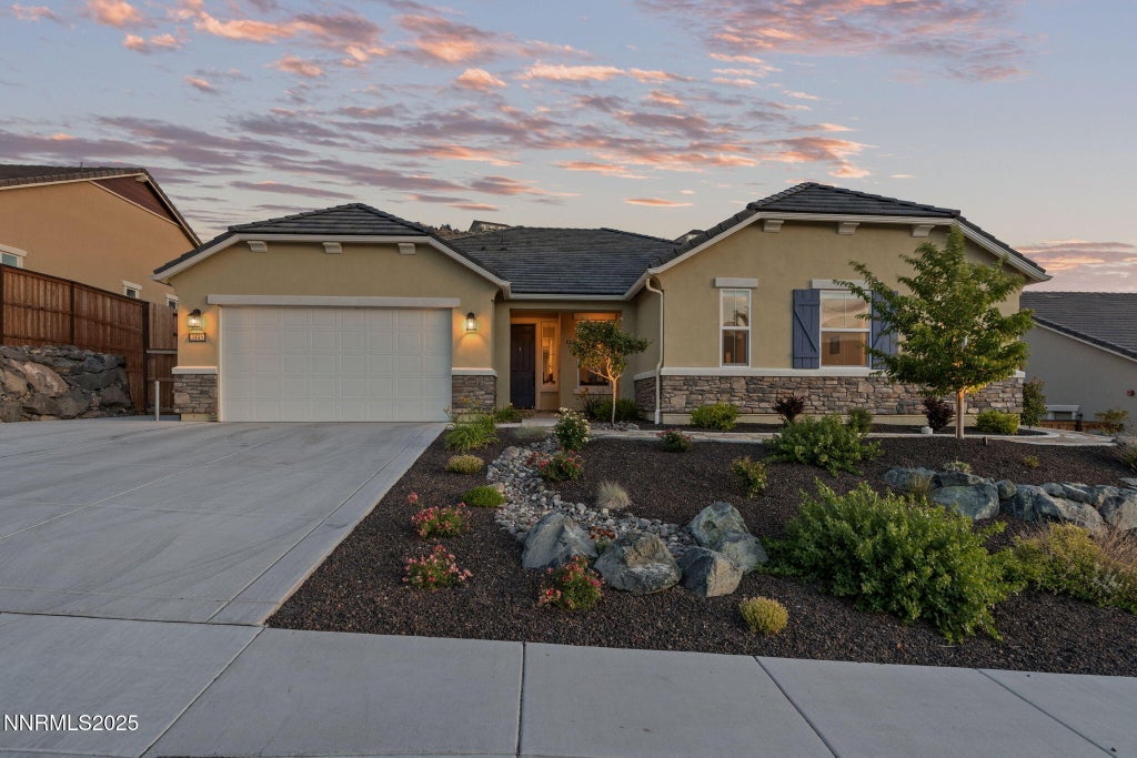 Prime location only 10 minutes to the freeway, 6 min to Northern Nevada Medical, Safeway and CVS are 6 min, Costco at Galleria Shopping is 13 min. Schools are also convenient: Marvin Moss Elementary (4 min), Mendive Middle School (6 min) and Reed High School (8 min). Located in highly sought-after D'Andrea community of Sparks, views of city skyline, no rear neighbors, and a highly updated home. Tech-forward features include a whisper-quiet, insulated 3-car garage with a WiFi control opener, garage wiring ready for EV charging station, a 50-amp induction cooktop, touch-activated faucet, instant hot water dispenser, hardwired internet, and Ring doorbell. The tankless water heater, dual-zone WiFi-enabled HVAC system, and water softener add both efficiency and comfort. Enjoy the convenience of automatic lighting, auto window shades in the living room, and a smart front door lock for seamless, secure access. Every detail of this home has been upgraded, from water- and scratch-resistant flooring to the beautifully landscaped front and backyard, complete with accent lighting and a tranquil water feature. The primary suite offers a spa-like retreat with dual sinks, a garden tub, walk-in shower, and custom built-in closet storage. The spacious laundry room includes two full walls of cabinetry and a utility sink for added functionality. Located just moments from D'Andrea Golf Course and local amenities, this home blends high-end finishes, prime location, and intelligent design to create a truly exceptional lifestyle.