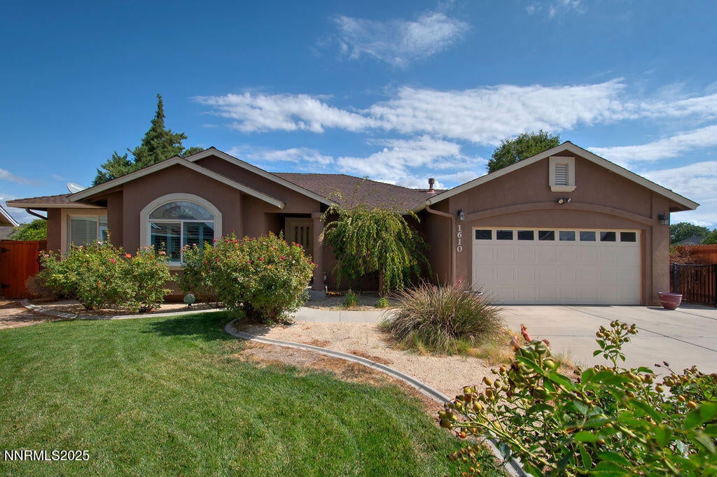 A beautiful home in a quiet cul-de-sac, and on the 8th fairway at The Ranch public golf course in Fernley. The floor plan allows for a formal living and dining area, and a family room providing golf course views. The back yard is fully fenced. The living/dining area has decorative glass accents in the 1/4 round window. Kitchen has a breakfast nook area, granite countertops and a decorative backsplash. The kitchen island adds additional cabinet space and provides the breakfast bar area. Other than the kitchen and entry, the house is done in an attractive laminate flooring. Kitchen and entry are newer vinyl tile for easy cleaning. Owners installed plantation shutters about 2 years ago to almost all of the windows in the home. Rubber tiled flooring accents the garage. Exterior features include a dog run, shed, tiled rear patio and partially covered, a koi pond and water feature. R/O System at kitchen sink. Refrigerator in kitchen, additional refrigerator and water softener stay at no value nor implied warranty.. Please check out the photos and the video of the property.
