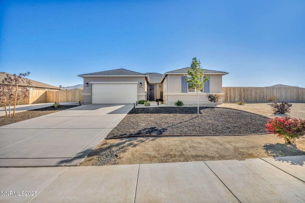Welcome to this beautifully maintained 4-bedroom, 2-bathroom single-family home, built in 2021 and situated on a generous .35-acre corner lot. Designed with both comfort and functionality in mind, this home features a large entryway leading into an open-concept kitchen and living room, perfect for entertaining or relaxing with family. The kitchen is equipped with granite countertops, stainless steel appliances, and ample storage space, making it a true centerpiece of the home. Enjoy updated ceiling fans in both the living room and the spacious primary bedroom, adding modern comfort throughout. Primary also offers a large walk in closet. The 3-car tandem garage provides plenty of space for vehicles or storage, with built in cabinets and shelves. The property also includes a second detached driveway that can easily accommodate two additional cars or an RV. Step outside to a beautifully landscaped backyard oasis, complete with a paved patio and built-in gazebo, ideal for outdoor gatherings or quiet evenings under the stars. The owned water softener adds convenience, and the breathtaking mountain views offer a scenic backdrop to everyday living. This move-in ready home combines modern style with thoughtful upgrades in a peaceful, desirable location - a must-see!